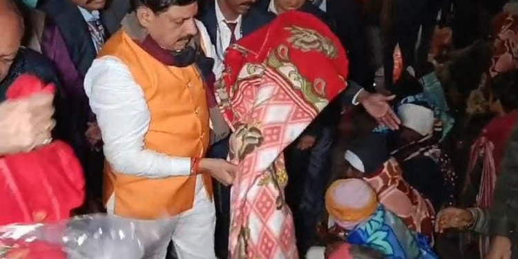 ठंड में ठिठुरते लोगों को कंबल वितरित किए
