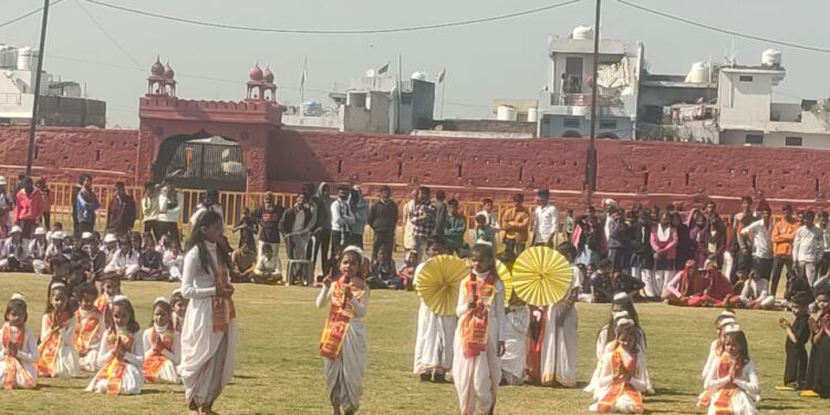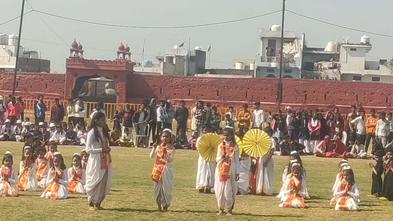 किले मैदान में विभिन्न स्कूलों से आए बच्चों ने मनमोहक प्रस्तुति देखकर माहौल जमा दिया बाघा बॉर्डर पर जवानों द्वारा बेटिंग शेयर मनी मनाई जाती है उसी की प्रस्तुति अयोध्या में भगवान राम प्रतिष्ठा की उपलक्ष में नाटक का मंचन कर किस प्रकार मर्यादाओं में रहकर व्यक्ति को अपनी सीमा नहीं लागनी चाहिए आदि कई संदेशों को बच्चों ने अपने प्रस्तुतियों के माध्यम से जनता के बीच संदेश दिया।