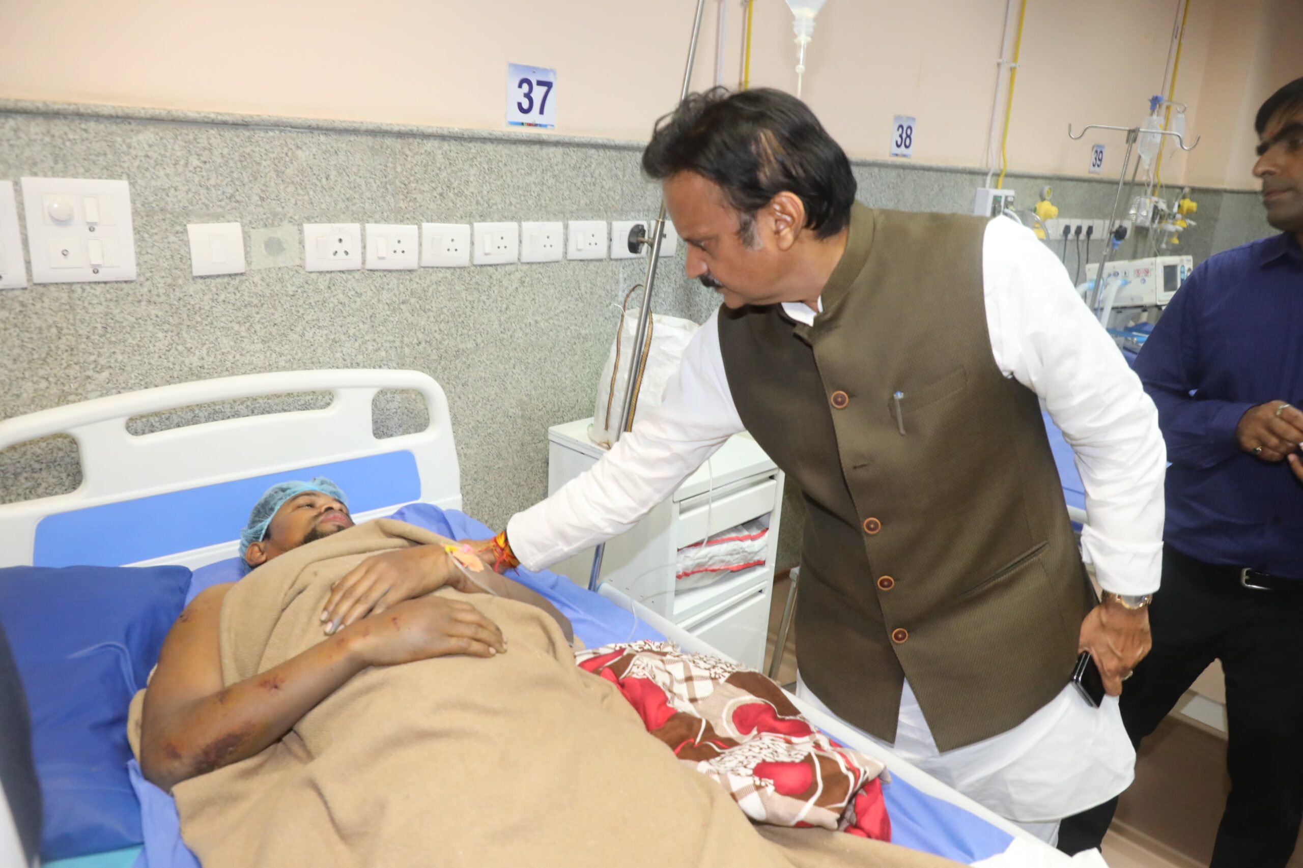 हरदा दुर्घटना में पीड़ितों का हाल लेने एम्स पहुँचे डिप्टी cm शुक्ल