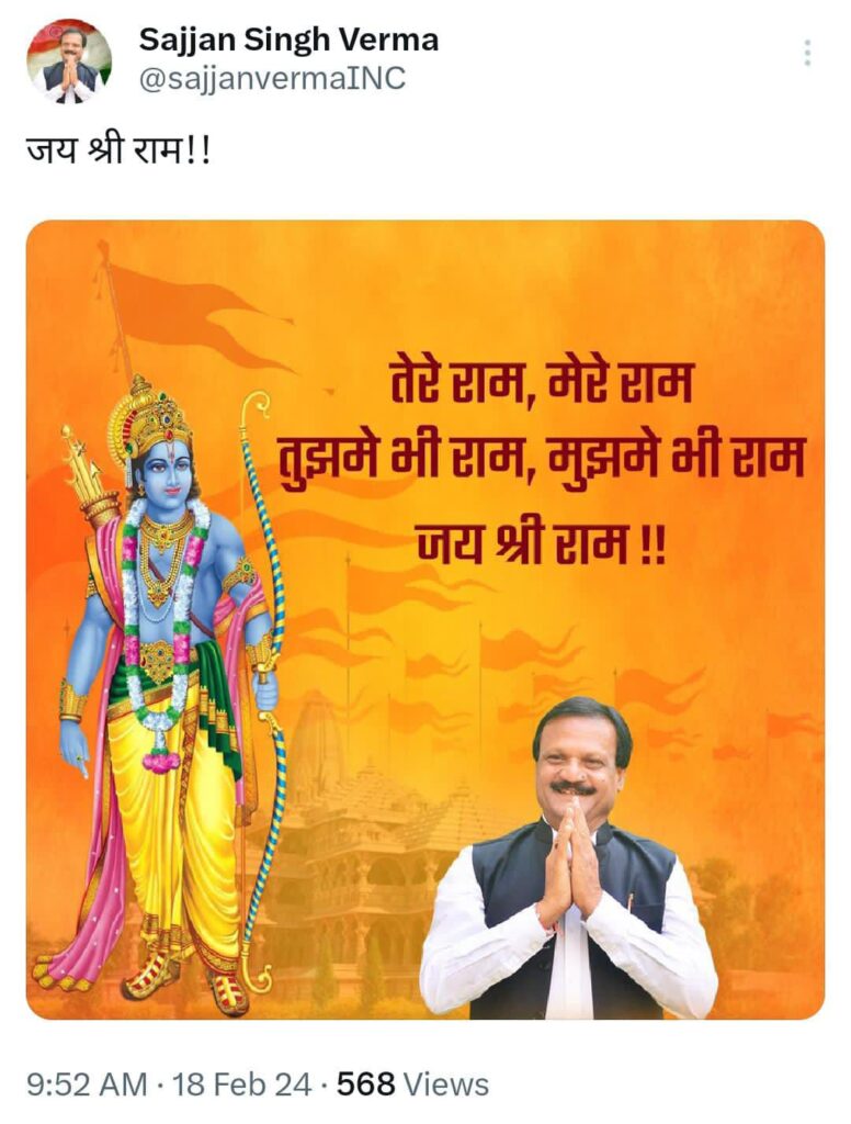 वरिष्ठ कांग्रेस नेता और कमलनाथ के करीबी सज्जन वर्मा ने आज सुबह की नई पोस्ट।