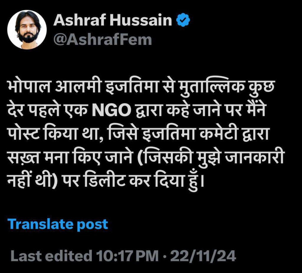 भोपाल। चंदे का धंधा हमेशा लोगों के लिए कमाई का जरिया रहा है। तीज, त्योहारों और विभिन्न अवसरों पर लोग इसका फायदा उठाते रहे हैं। इंतहा तब हो गई, जब एक रजिस्टर्ड सामाजिक संस्था (NGO) ने आलमी तबलीगी इज्तिमा को के नाम पर ही चंदा उगाई की अपील कर डाली। जबकि करीब 77 बरस पुराने इस आयोजन का सूत्र कभी भी किसी तरह के चंदा उगाई का नहीं रहा है। “अल्लाह की राह में, अपने कदमों से, अपने खर्च पर” की धारणा के साथ यह आयोजन होता रहा है। सही समय पर इज्तिमा प्रबंधन के एक्शन लेने का असर यह हुआ कि एनजीओ ने अपनी अपील वापस ले ली और दानदाताओं से माफी मांग ली है।